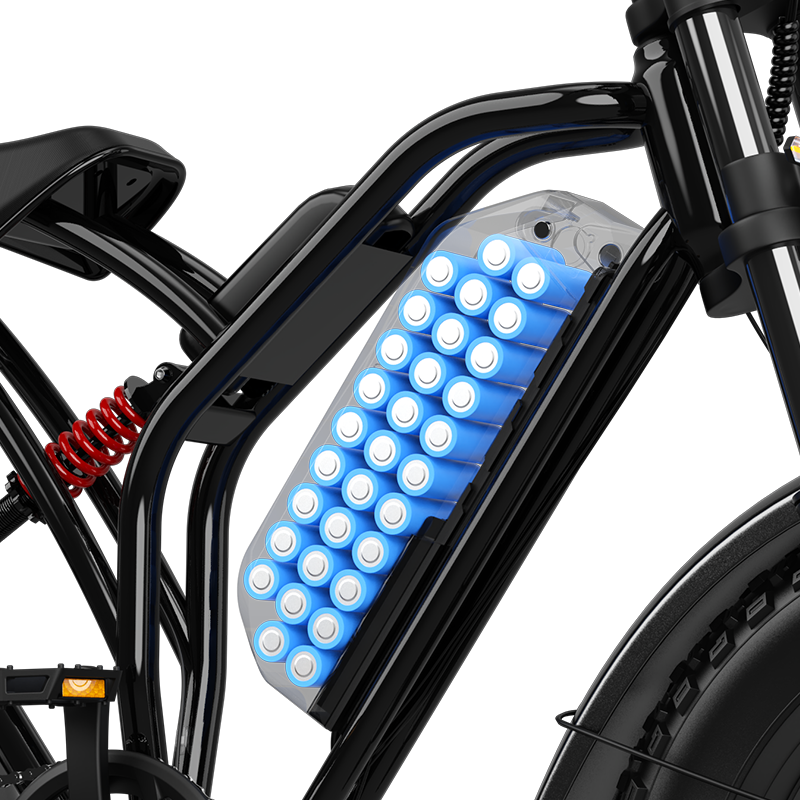 The DEEPOWER S20 ebike features a rugged, reinforced frame that supports an impressive 440 lbs max load, easily handling everything from camping gear and daily groceries to a riding companion for your off-road adventures.
